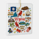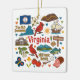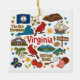 Commemorate your trip to the state of Virginia with this modern keepsake Christmas ornament, featuring hand-drawn style illustrations of iconic food, animals, landmarks, landscapes, and culture. Personalize the back to mark your US adventure and create a memory you'll hang up on the tree for the Holidays year after year.