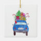 Ornement En Céramique Voiture bleue avec cadeaux de Noël Aquarelle