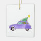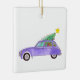 Ornement En Céramique Voiture violette avec cadeaux de Noël