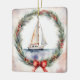 Ornement En Céramique Watercolor Christmas Sailboat In Wreath