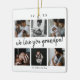 Une photo simple mais audacieuse ornement grand-père avec 6 photos et nous vous aimons grand-père texte modifiable. Créez un beau cadeau personnalisé à votre grand-père (Papa) qu'il chérira pour toujours. Petit-enfants personnalisées spéciales photo collage ornement pour afficher vos propres photos et souvenirs de famille spéciaux. Notre conception comprend une simple grille de collage photo 6 avec un script manuscrit moderne modifiable nous vous aimons grand-père. Customisez avec les noms des petits-enfants.