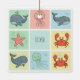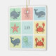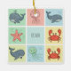 Cet adorable ornement personnalisé au thème océanique présente des gribouillages de baleines, méduses, étoiles de mer et crabes ! Ces motifs ludiques présentent des lignes douces, arrondies et des expressions joyeuses, dressées contre des arrière - plans de couleur pastel comme le vert menthe, le rose bébé, le bleu poudreux et le jaune pâle.