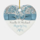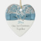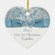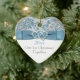 Souvenez-vous de votre journée spéciale avec ce beau coeur en céramique glittery bleu, gris argenté et blanc flocons de neige premier Noël "Happily Ever After" gardien de l'ornement. Il a un ruban bleu glace IMPRIMÉ et arc avec une paire de bijoux en diamant et FAUX parties scintillant bleue joint le coeur sur elle. Vous pouvez customiser le texte pour dire ce que vous voulez. ****VEUILLEZ vous assurer que votre texte est placé là où vous le souhaitez, car il sera imprimé tel qu'il apparaît sur votre écran. Zazzle ne corrigera rien. Si vous avez besoin d'aide, envoyez un courriel à niteowlstudio@gmail.com.