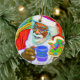 Ce ornement en cercles de céramique présente une Père Noël noire aux couleurs pastel vibrantes tenant une tasse de chocolat chaud.