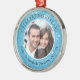 Créez un souvenir photo commémoratif du dixième anniversaire du mariage pour un couple spécial avec un ornement personnalisé avec leur photo, les noms et la date du mariage et le titre CÉLÉBRER 10 ANS dans la couleur bleue traditionnelle pour un 10e anniversaire. Vous pouvez également utiliser ce modèle pour N'IMPORTE QUELLE année anniversaire. CONSEIL DE MODIFICATION pour le texte du titre : Notez qu'il y a des lettres majuscules au milieu des mots. Il suffit de changer le # en nombre d'années correct.