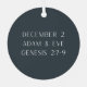 The reverse side features a deep gray-blue background—evocative of the heavens and earth—with the inscription “Adam and Eve – Genesis 2:7-9.” This passage recalls the beauty of man formed from the dust and the tree of life planted in the midst of paradise.