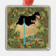 Un Doberman Pinscher efface facilement un saut contre un arrière - plan d'une couronne de Noël