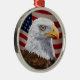 Le majestueux pygargue à tête blanche devant le drapeau américain. Parfait pour les célébrations patriotiques comme le Jour des anciens combattants et le Jour de l'Indépendance/4 juillet. OEuvre d'art réaliste créée à partir d'une peinture à l'huile d'origine par la faune et l'équine Crista Forest. Pour en savoir plus, consultez le site ForestWildlifeArt.com.
