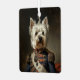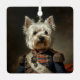 Portrait officiel de peinture à l'huile d'un terrier des Highlands de l'Ouest vêtu d'un uniforme victorien de la renaissance militaire du XVIIIe siècle, tel Napoléon. Chien blanc mignon Westie