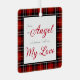 Ce joli ornement commémoratif de Noël avec la photo de votre partenaire d'un côté et les mots "J'ai un Ange au Ciel - Je l'appelle Mon Amour" à l'intérieur d'une frontière rouge plaid de l'autre serait magnifique sur votre arbre.