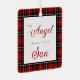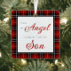 Ce joli ornement de Noël commémoratif avec la photo de votre fils d'un côté et les mots "J'ai un Ange au Ciel - Je l'appelle Fils" à l'intérieur d'une frontière rouge plaid de l'autre aurait l'air magnifique sur votre arbre.