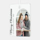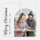 Modern Christmas ornament featuring a minimalist white background, a photo template and season's greetings 'merry christmas'. Personalize with your family name and year. Happy Holidays!