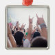 Photographie d'une assistance éclairée par des projecteurs à un concert jetant des poings de rock. Roche dessus !