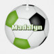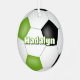 L'ornement sur le thème du football de cet enfant présente l'image réaliste d'une balle de football sur laquelle vous pouvez customiser le nom de l'athlète sur le devant et l'année commémorative sur le dos - certains des panneaux typiquement noirs de la balle de football ont été recolorés vert vif - style de police est également personnalisable - par katz_d_zynes