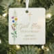 This floral Baptism photo keepsake ornament features wildflowers and a cross with stylish gold script typography on a soft cream background.