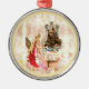 L'art vintage avec la peinture du conte de fées classique "beauté et la bête" beauté est dans une robe rose et le manteau rouge assis sur une chaise et d'avoir une tasse de thé avec la bête, un ours marron.