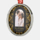 Ce magnifique ornement de Noël présente une élégante arche botanique florale couleur or encadrée photo et élégant script de Noël Marié avec l'année sur un arrière - plan noir. Parfait pour le premier Noël du couple marié comme M. et Mme Magasinez ce magasin pour coordonner les cartes de voeux de Noël, les ornements et les options de couleurs de vacances supplémentaires!