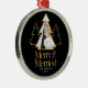 Célébrez votre premier Noël en couple marié avec cet ornement de Noël élégant et moderne. Doté d'un arrière - plan noir avec des arbres de Noël dorés, cet ornement est parfait pour présenter votre photo mariage.