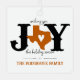 Envie d'amis et de famille de la taille du Texas cette saison de vacances est facile avec ce design. Le "O" dans la joie est remplacé par la forme du Texas avec un coeur coupé du centre. Lettres de style occidental associées au texte manuscrit. Personnalisez le devant avec vos noms de famille et le dos avec votre photo préférée. Le design vous permet de choisir vos propres couleurs. Vient en rouge, vert, bleu, lavande, aqua, marron, orange brûlé, or et argent. Produits correspondants disponibles.