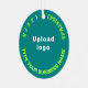 Joyeux Noël! Métal ornement avec Joyeux textes de voeux de Noël, votre nom d'entreprise ou d'entreprise et logo. Les dessins sont des textes vert jaune sur arrière - plan vert turquoise et en forme de cercle. Ornement pour décorer le sapin de Noël dans votre magasin, magasin ou bureau. Ornement pour accueillir visuellement vos clients cette saison de vacances et pour annoncer votre entreprise ou promouvoir votre marque. Customisez-le et utilisez-le pour sensibiliser la marque. Veuillez vérifier l'apparence après avoir téléchargé le logo et tapé votre nom d'entreprise. Si l'apparence vous plaît, vous pouvez passer votre commande maintenant. Si vous avez besoin de redimensionner et déplacer le logo et les textes pour s'adapter à cet ornement ou à d'autres styles que vous choisirez, s'il vous plaît changer dans l'outil de conception. Vous pouvez également effectuer d'autres modifications selon vos préférences dans l'outil de conception, comme changer la couleur de l'ornement, la couleur de police et le style de police. Joyeux Noël! Je vous souhaite plus de ventes cette saison des Fêtes.