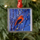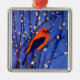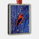 Bel ornement de Noël dans bleu et rouge profonds. Un cardinal rouge intelligent s'assied sur une branche de saule de chat contre un ciel bleu profond