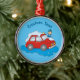 Dessin d'un homme en bleu lavant à la main une voiture rouge. Texte personnalisé.