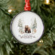 Ce design boisé de Noël d'inspiration nature et cosy présente le texte "c'est le moment le plus merveilleux de l'année." Au-dessus du texte se trouve un ours brun dans une forêt d'hiver. Cette scène animalière boisée est parfaite pour ajouter une touche de nature enneigée à votre décor de maison de vacances.
