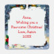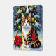 Ornement de Noël sur le thème du chat mignon avec un beau chat tabby avec des poinsettias rouges et un fond d'arbre de Noël enneigé. Au dos, vous pouvez ajouter votre propre message personnalisé.