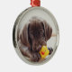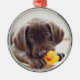 Ornement En Métal Chocolate Labrador Puppy With Toy Duck