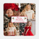 Décor moderne de Noël photo avec un design simple avec un collage photo de vos huit photos préférées, quatre à l'avant et quatre à l'arrière. Les photos carrés fonctionnent mieux. Au milieu se trouve le salut "Joyeux Noël" avec votre(s) nom(s) et année en rouge sur un arrière - plan blanc. Cet ornement de vacances personnalisé fait un grand cadeau pour les grands-parents.