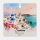 Celebrate a love that spans the globe with this elegant, double-sided ceramic ornament. Featuring a stunning hand-painted watercolor illustration of the iconic blue-domed churches of Santorini, this keepsake is the perfect way to commemorate a destination wedding, a romantic honeymoon, or a dream vacation.