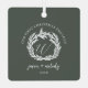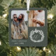 Elégante et moderne photos de couple fiançailles personnalisées monogramme ornement. Notre ornement personnalisé présente notre modèle de guirlande d'hiver dessiné à la main avec monogramme et deux photos, salutation et nom du couple. Diffusez l'amour et applaudissez cette saison de vacances avec ce magnifique ornement fiançailles personnalisé. Conception par Moodthology Papery