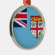 Le drapeau fidjien est un signe bleu clair avec le bouclier des armes à la mouche. Les couleurs utilisées dans le drapeau sont le bleu, le rouge, le blanc. La proportion du drapeau fidjien est de 1:2. Le drapeau de Fidji a été adopté en 1970. La première utilisation de la conception actuelle du drapeau remonte à 1924. La dernière modification de la conception actuelle du drapeau fidjien remonte à 1970.