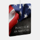 Un vrai gardien fier d'être un Américain a un drapeau plié et dit "Dieu bénisse l'Amérique" dans le décor de police moderne.
