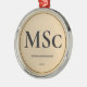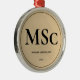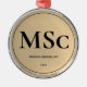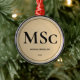 Un ornement pour un diplômé en MSc avec une tonalité or (non-feuille) et un jeu de couleurs noires. Il montre le diplôme, le nom et l'année. Customisez simplement cet ornement, ajoutez-le à votre panier et gardez un souvenir de cette réalisation majeure. Élégamment simple Gold MSc Graduation Métal Ornement Jours fériés Conception | ©Melissa Patton - Designer