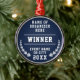 Honor companie's victories with this bold Medal Ornament, featuring an elegant navy blue backdrop and a simple, classical design. Its bold black and white typography blends sporty with modern style, making it perfect for business events, sports competitions, graduations, and other special occasions. This minimalist yet ornate keepsake captures the essence of success, offering a sophisticated way to commemorate memorable moments. Whether displayed at home or gifted to someone special, it embodies achievement.