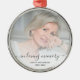 Commémorez un être cher en cette période de fêtes avec cet ornement de photo keepsaké. Le texte gris charbon dit "Dans la mémoire aimante" en écriture manuscrite avec des swashes décoratifs au début et à la fin. Remplacez facilement l'exemple d'image par votre photo préférée, et ajoutez leur nom et leurs dates ci-dessous. Un écran de dégradé blanc permet d'afficher la superposition du texte.