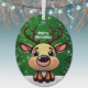 Enchanting Young Buck Starry Green Whimsical Winter Woodland Wildlife Animal Oval Metal Xmas tree Ornament! Depicting a lovable cartoon reindeer character portrayal of a gentle fawn atop a snowy terrain, framed by cascading stars along both edges, embodying a serene sight suited for the joyous holiday season. This design matches well with evergreen gifts, making them great personalized markers for packages, spreading delight throughout your abode. This endearing dual-faced artwork is customizable for straightforward tailoring with your unique greetings or names on each face! It transforms into a prized heirloom for ongoing enjoyment. Modify the deer decor by adjusting the editable white "Merry Christmas" lettering, typeface, or omit it. You're welcome to adapt this illustration to further merchandise for infinite seasonal ingenuity. Act fast—tailor and acquire this custom doe decoration now to elevate your festivities to magical heights!