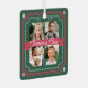 Thème de bonbons amusant et ludique équipage de Noël quatre ornement photo de conservation. L'ornement de conservation peut être customisé avec l'année, et quatre photos à l'avant et à l'arrière. Cadre de sucre de canne amusant avec ruban rouge et éléments de bonbons en spirale rouge et verte menthe poivrée. Oeuvre de Moodthology Papery.