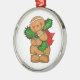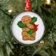 Christmas Ornament is shown in a round shape with a cute holiday gingerbread man print.