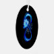 Luminous infinity symbol with glowing, beautiful, lushly blooming rose made of blue flames on black background.