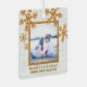Photo personnalisée Les ornements de Noël font de beaux cadeaux de gardiens pour les amis et la famille et cet élégant faux flocon de neige en or et faux bois blanc rustique ajoute un petit Noël à votre décor tout en mettant en valeur vos photos précieuses. Simple à personnaliser, ces ornements photo personnalisés ont des modèles photo et texte faciles qui vous permettent d'ajouter votre photo et texte personnalisé dans une couleur or foncé. Si vous préférez vos ornements sans texte, il vous suffit de supprimer et effacer le texte de l'espace réservé pour le supprimer. Téléchargez votre photo chère et regardez-la devenir partie de ce design mignon, bordé de parties scintillant en faux or et accentué de cinq flocons de neige en faux or parties scintillant tombant sur le sommet de ces ornements de vacances en aluminium. Imprimés sur les deux côtés, rien que pour vous, ces ornements de flocon doré et de photo en bois rustique sont de fantastiques souvenirs de Noël pour petits et grands.
