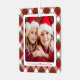 Un ornement de Noël pour la meilleure grand-mère avec 2 de vos photos encadrées sur un joyeux arrière - plan plaid de saison rouge, vert et blanc. Personnalisez si elle est appelée, grand-mère, Nana, Abuela, etc. et avec les noms de ses petits-enfants dans la simple typographie rouge. Ajoutez une autre photo et une autre ligne de texte à l'arrière.