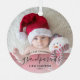 Aidez-les à célébrer leur premier petit-enfant avec ce magnifique ornement moderne de gardiens. Le texte en noir "Notre premier Noël en tant que grands-parents", avec le mot "grands-parents" dans un élégant script d'écriture manuscrite avec des fioritures avant et après. Remplacez facilement l'image de l'échantillon par votre photo préférée du nouveau bébé, et ajoutez son nom et l'année. Un filtre dégradé blanc permet de faire apparaître le texte.