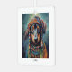 peinture d'un dachshund, chien plus blanc en vêtements hippies colorés