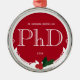 Un ornement pour un doctorat avec un schéma de couleurs rouge et blanc, et une décoration de baies et de feuilles saintes. Il montre le diplôme, le nom et l'année. Customisez simplement cet ornement, ajoutez-le à votre panier et gardez un souvenir de cette réalisation majeure. Holly Berry Rouge Blanc PhD Graduation Métal Ornement