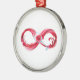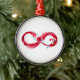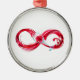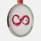 Infinity symbole of continuous stream of red pouring into glass glass glass on white background.