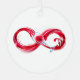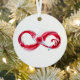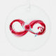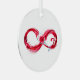 Infinity symbole of continuous stream of red pouring into glass glass glass on white background.