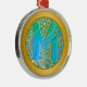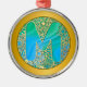 Initial Monogram M Christmas - Gold , Teal & Blue Metal Ornament.