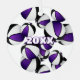 Ce joyeux décor de basket-ball est imprimé à l'avant et à l'arrière avec l'image d'un amas de balles de basket-ball violet, noir et blanc de taille variée - personnaliser avec le nom de l'athlète sur le devant et l'année commémorative à l'arrière - par katz_d_zynes